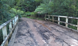 The road beyond the bridge to Mt Irvine was a piece of cake. We were told that the road was in a good state so that the Council could bring in the relevant machinery to demolish the bridge.